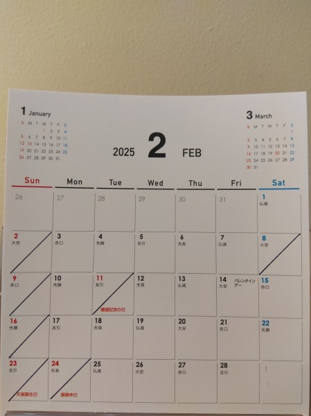 2月の営業日のお知らせ