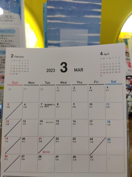 3月のお休みです。